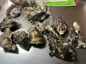 岩牡蠣頂きました。 初めて自分で開いてみましたが、境い目が分かりにくいですね。 焼いて美味しくいただきました!