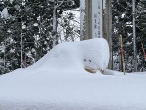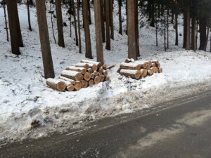 道沿いに丸太が積んだりました。 薄っすら雪が積もって ちょっと美味そう・・ ※写真はイメージです あー 腹減った