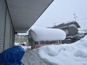 「今日も元気にドカンをきめたら ヨーラン背負って」♪ 「リーゼント」♪ さて、雪おろし終了。 次は家の屋根雪だ。